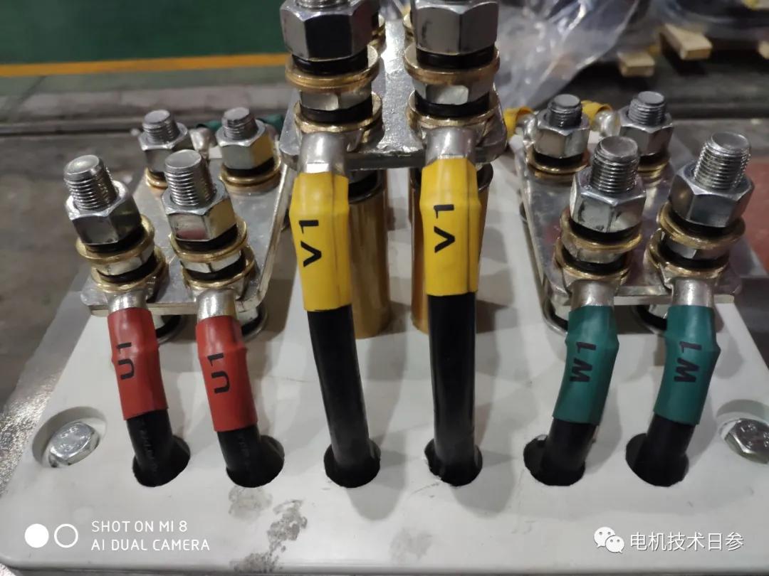 首先,我們從電機(jī)本體的引入線切入,看看各種復(fù)雜問題是如何推導(dǎo)出來的。三相繞組每相末端有兩個(gè)頭,共六個(gè)頭,通過引線電纜連接到具有內(nèi)部連接和外部連接功能的接線裝置(多為接線板結(jié)構(gòu)),確實(shí)不復(fù)雜。但是對于低壓大功率電機(jī),電流很大。為了連接、引出和固定,每相至少必須并聯(lián)三、四根適當(dāng)厚度的引線電纜,以解決生產(chǎn)加工過程中的工藝問題。由于同時(shí)連接了如此多的連接電纜,因此產(chǎn)生了不同類型的接線板或接線裝置,并且接線裝置必須具有相應(yīng)數(shù)量的端子或端子。至少三根或四根內(nèi)部電纜并聯(lián)對應(yīng)的客戶端是否有相同數(shù)量的出線電纜匹配?顯然,客戶不會(huì)容忍數(shù)量近乎密集的并聯(lián)方式,端子板或接線裝置必須配備集電桿,以滿足客戶接入的有限數(shù)量的出線電纜。通過與客戶溝通,確定出線電纜的規(guī)格、型號和數(shù)量,在接線盒或接線裝置上設(shè)計(jì)合適數(shù)量和孔徑的進(jìn)線孔,配置與出線電纜外徑相匹配的通孔直徑的電纜連接器是安全的。接線盒或接線裝置上的集電器配有專門用于客戶接線的端子。